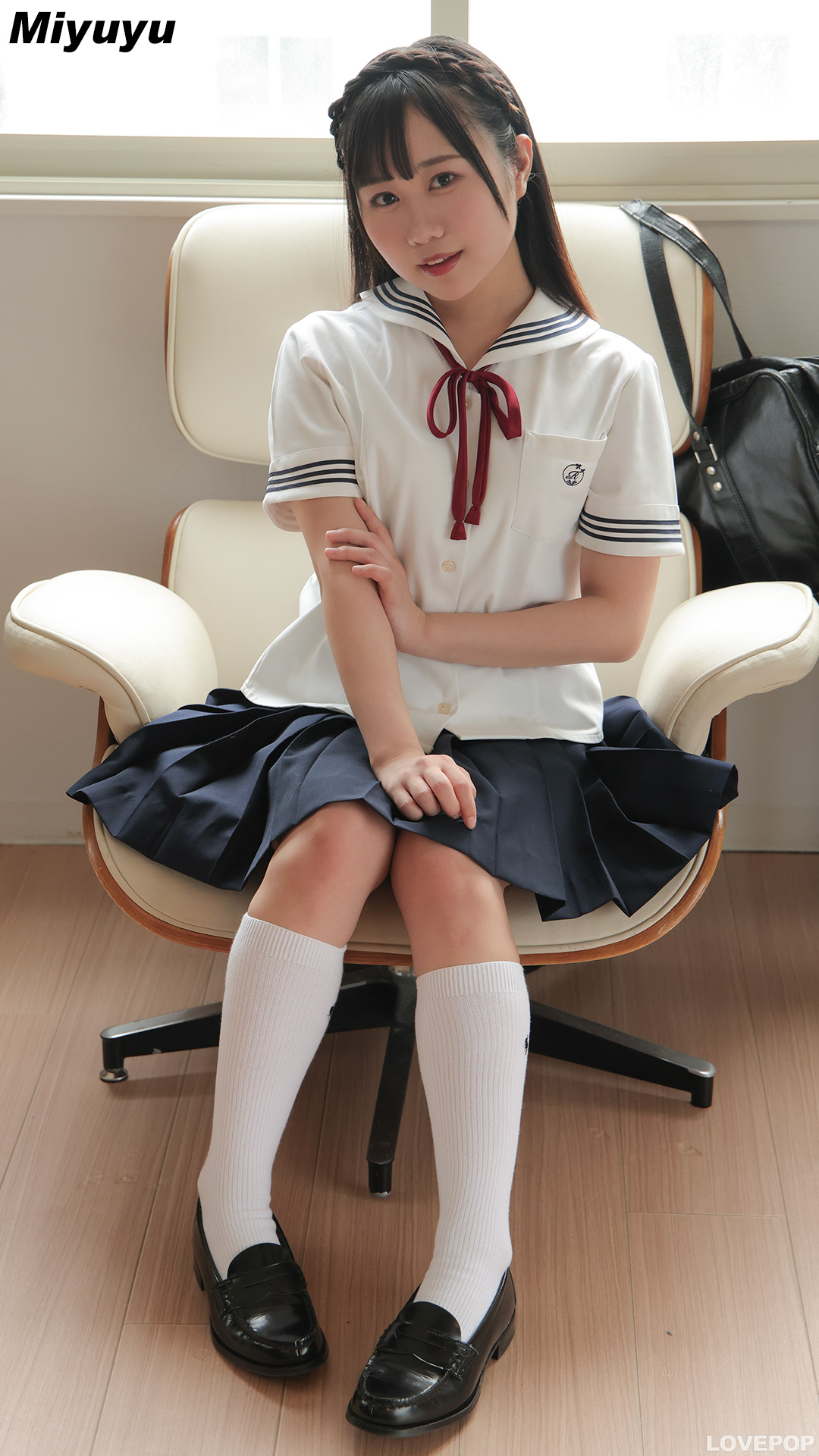 襟のところが洋服のようなきれいな制服ですね。ゆいちゃんが美少女なのでいっそう似合います。