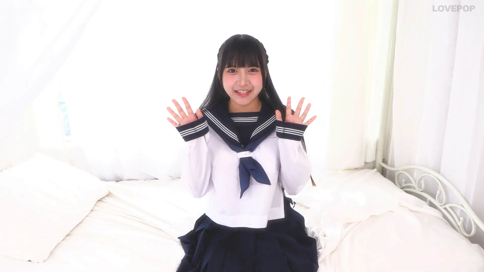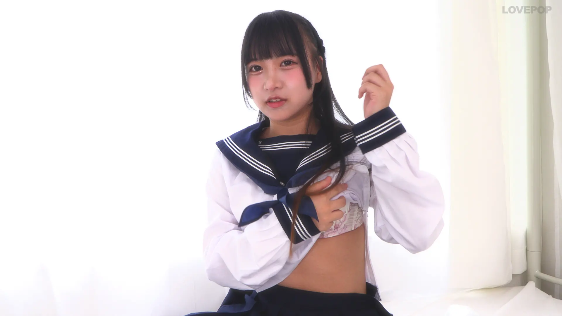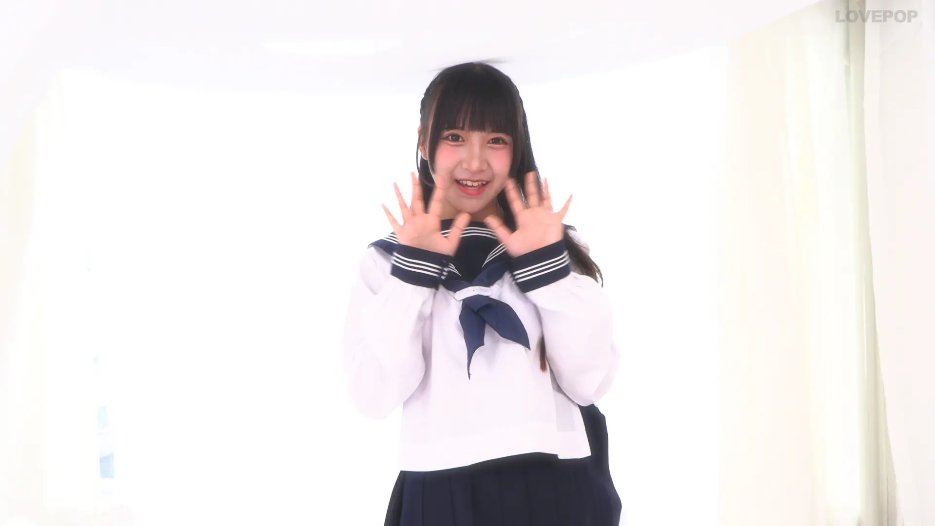 愛染ねね あどけない美少女フェイスから除く八重歯がカワイイ!! セーラー中間服