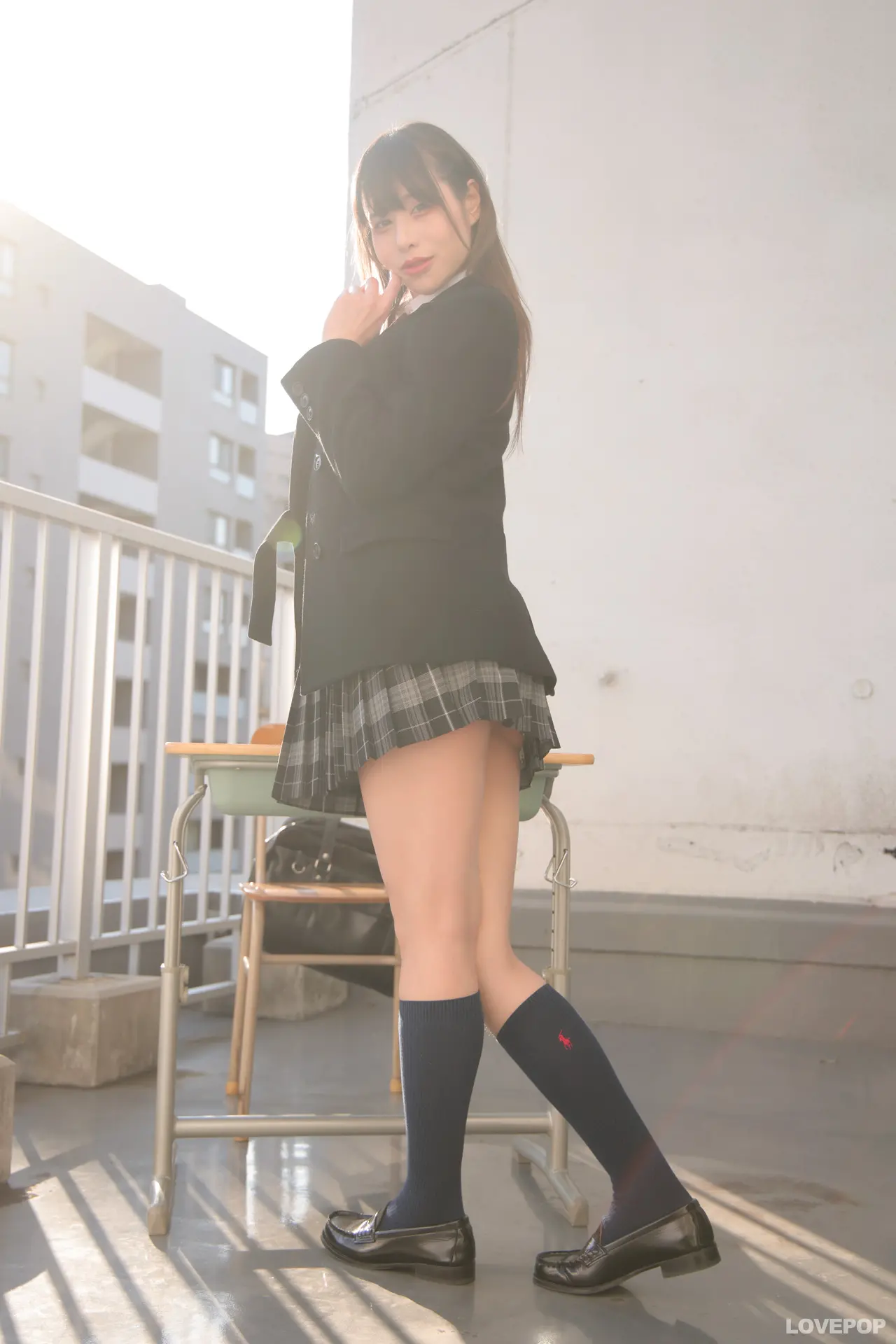 制服ベストを着た羽生ゆかちゃんが、太陽の下で青空教室!