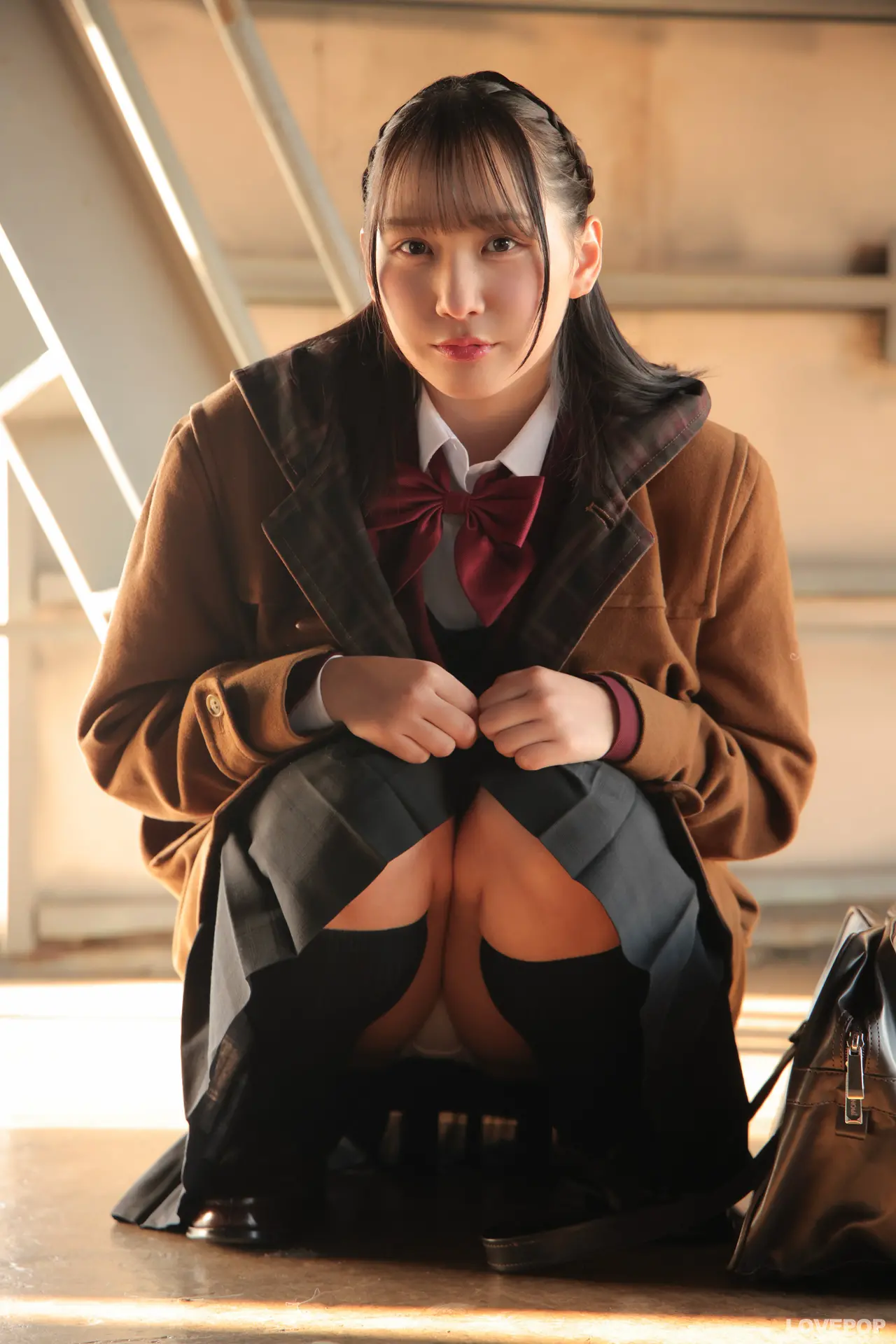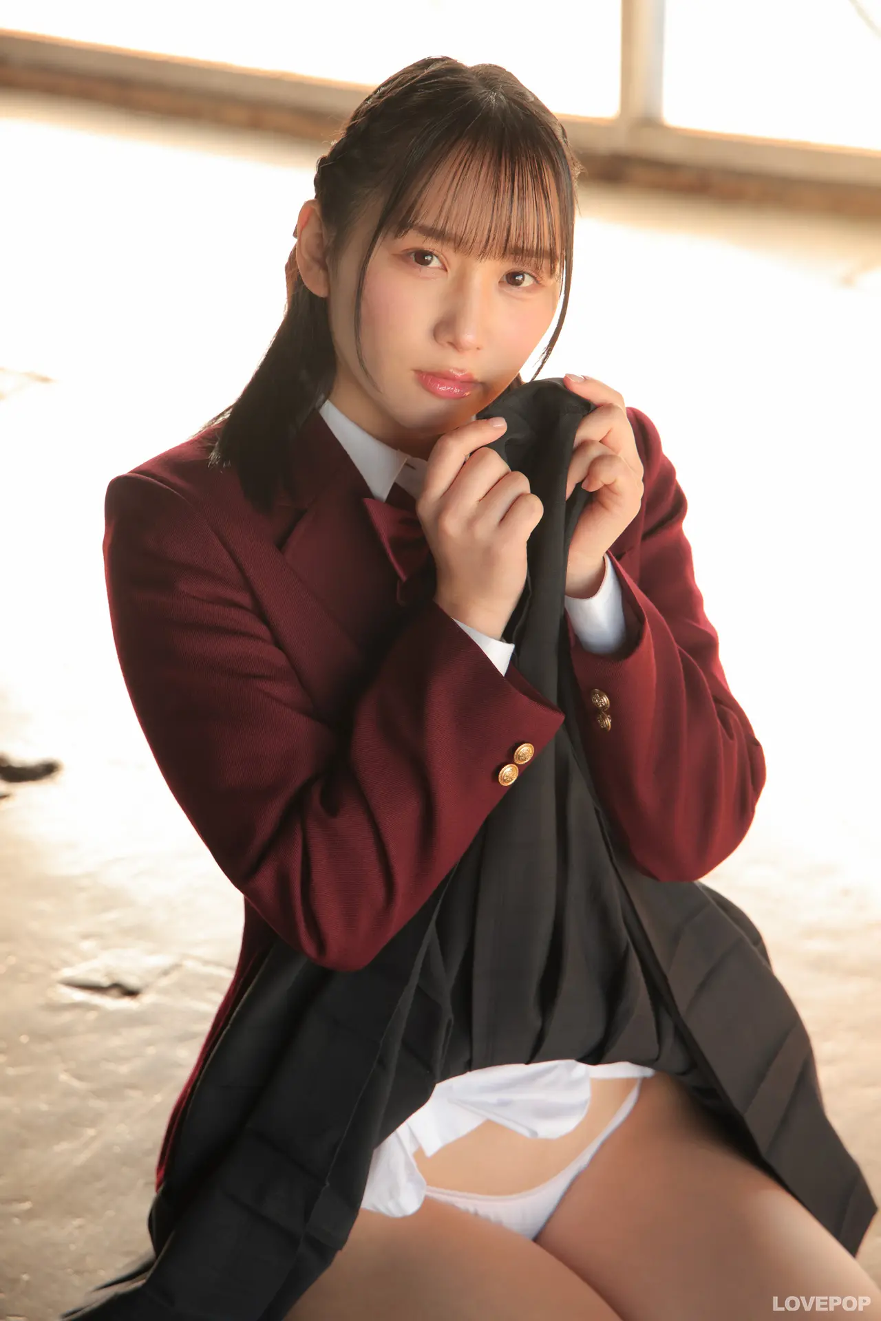 百花梅 臙脂色に染まる、ためらいの瞬間。制服ブレザー+コート