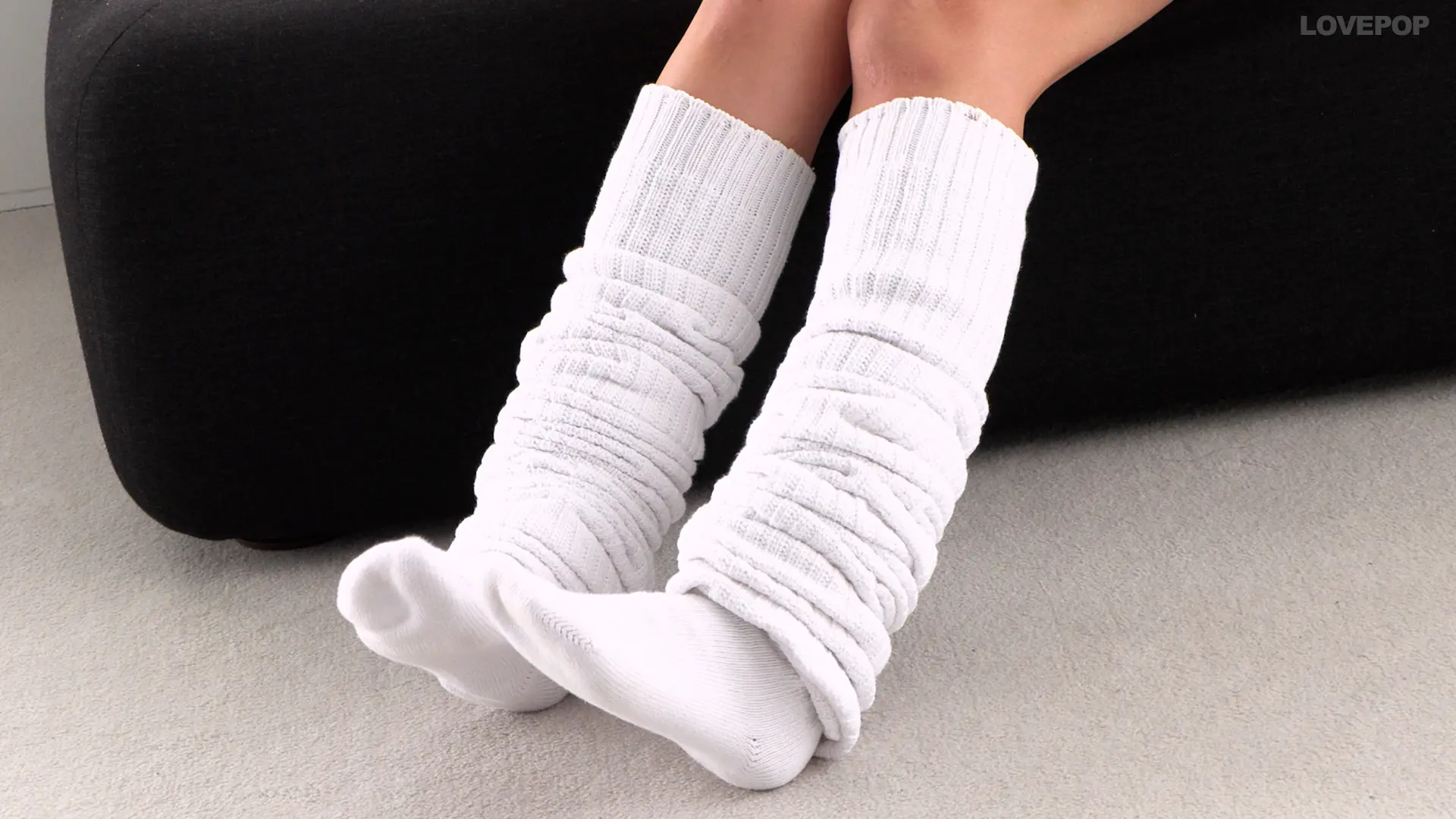 ピンクの制服姿でルーズソックスやニーソックス、黒ストを脱いだり、履いたり、