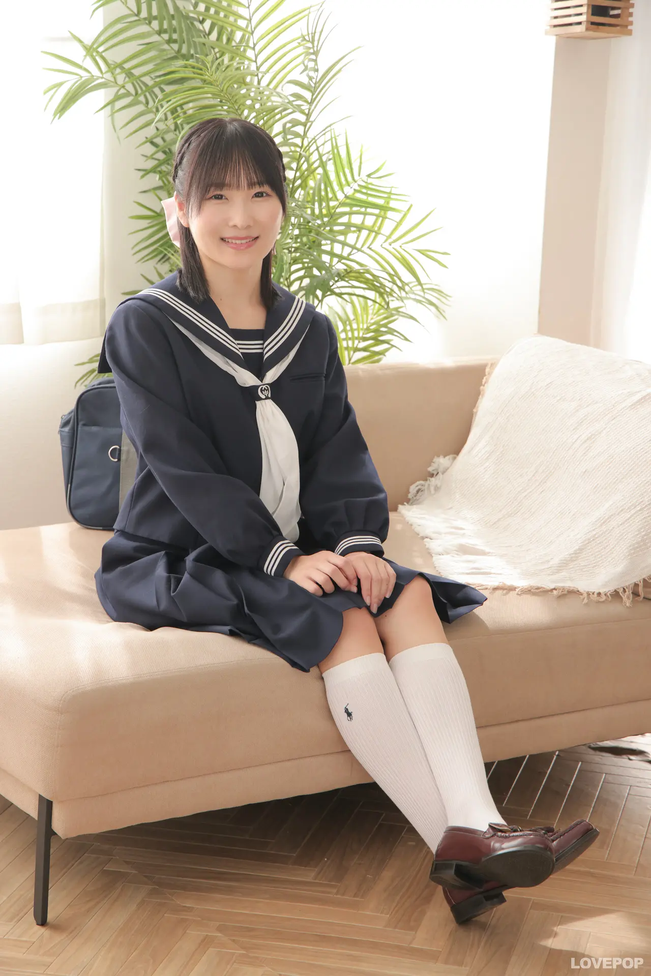 少し長めのスカートに白ソックス、大き目のヘアリボンが清楚感一杯でかわいい!