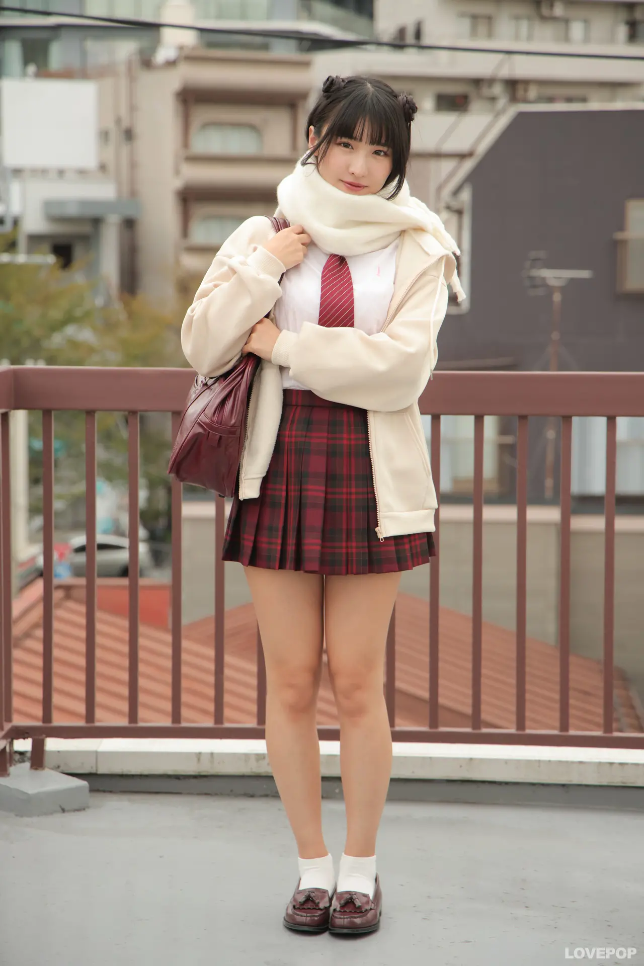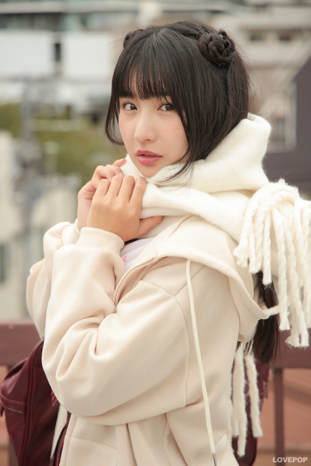 夏目みさこちゃんが制服パーカーにマフラーを巻いた姿で登場!