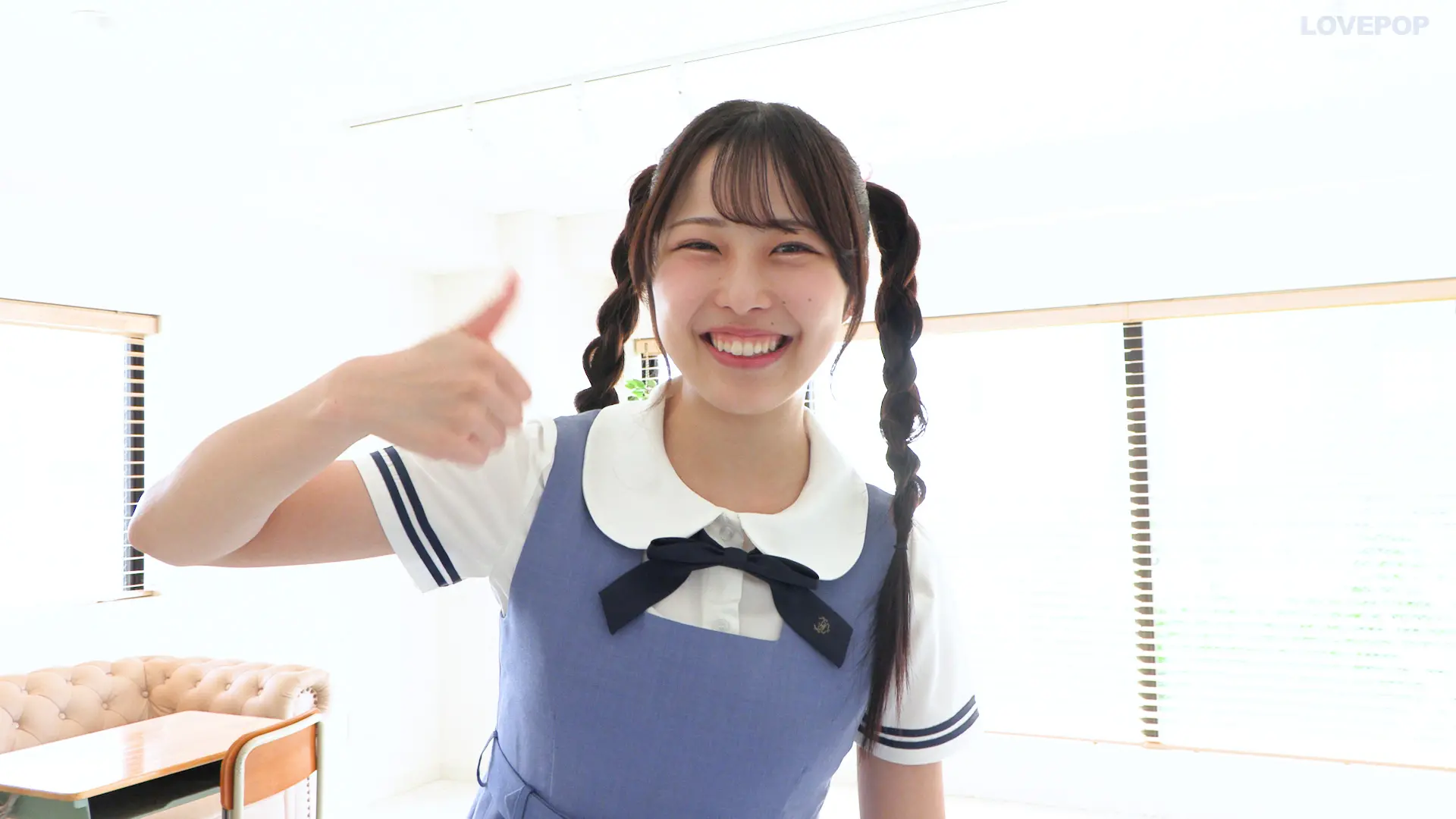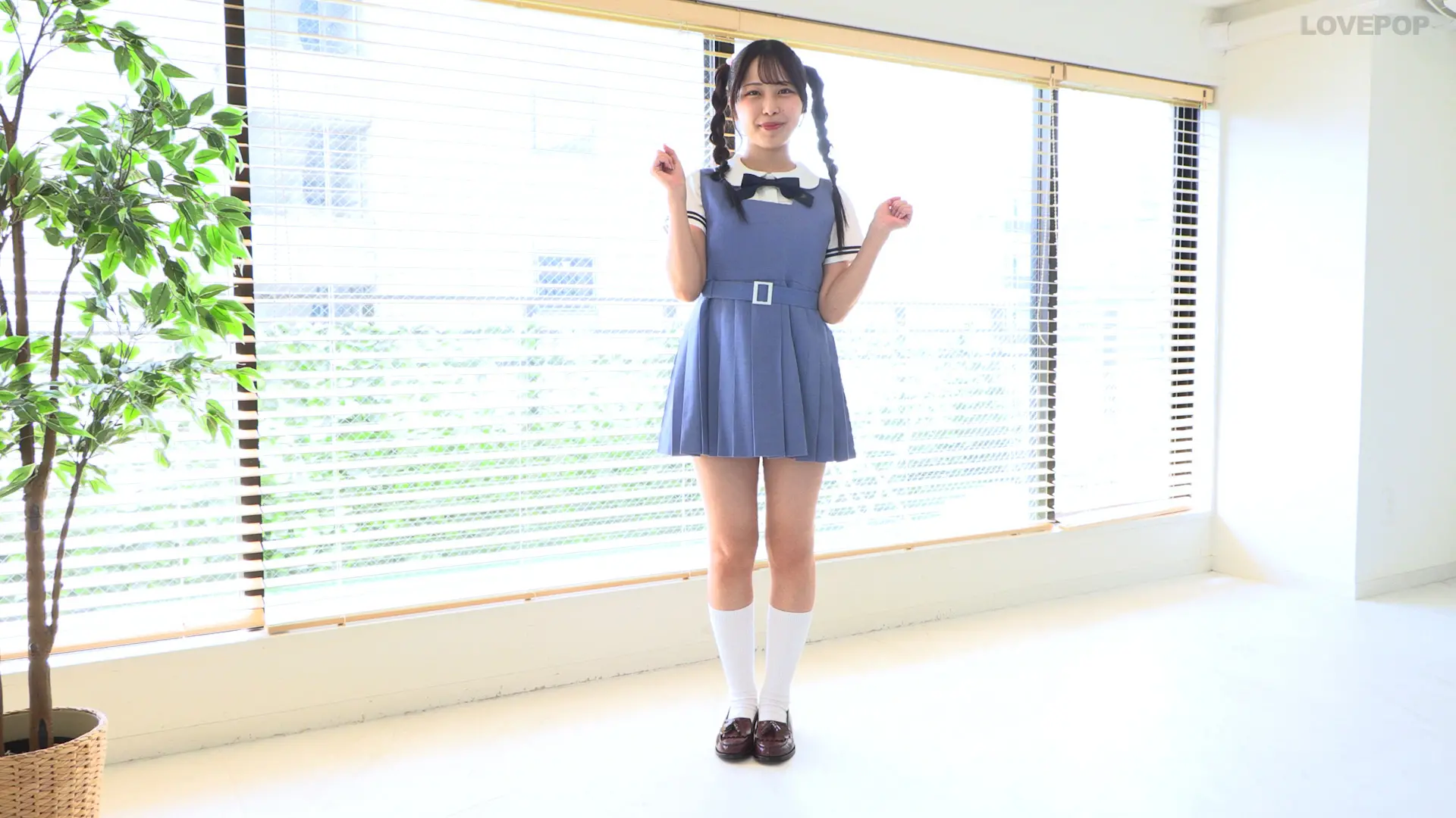 ジャンパースカートとツインテール三つ編み姿はまるで漫画のヒロインみたい。