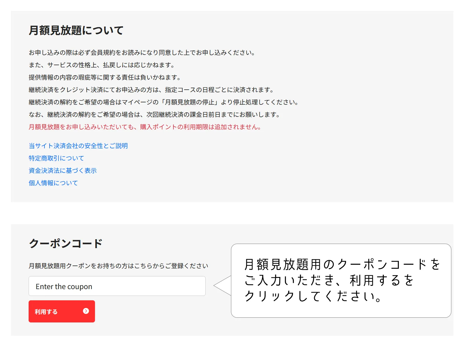 月額見放題お申し込み時にクーポンコードを入力すると月額見放題コース料金が割引されるお得なクーポンをプレゼント!