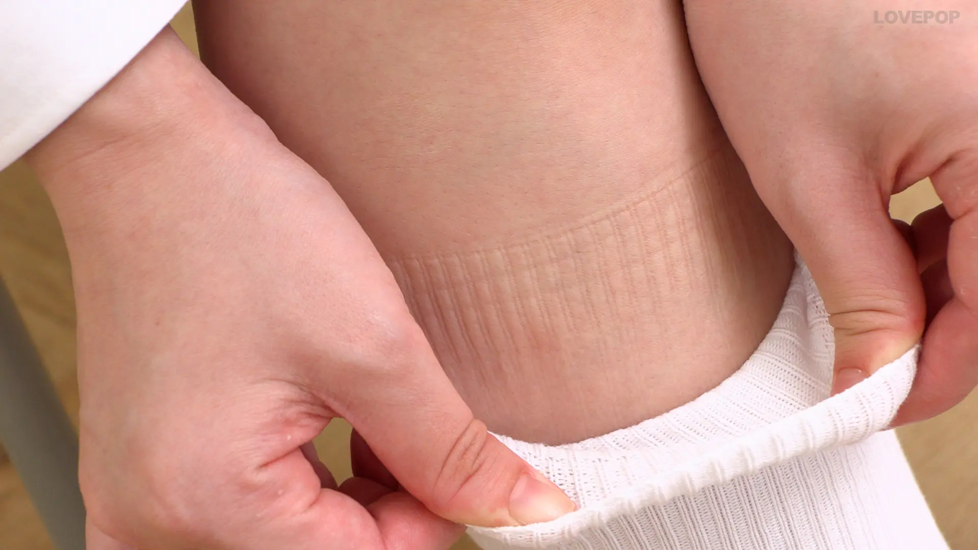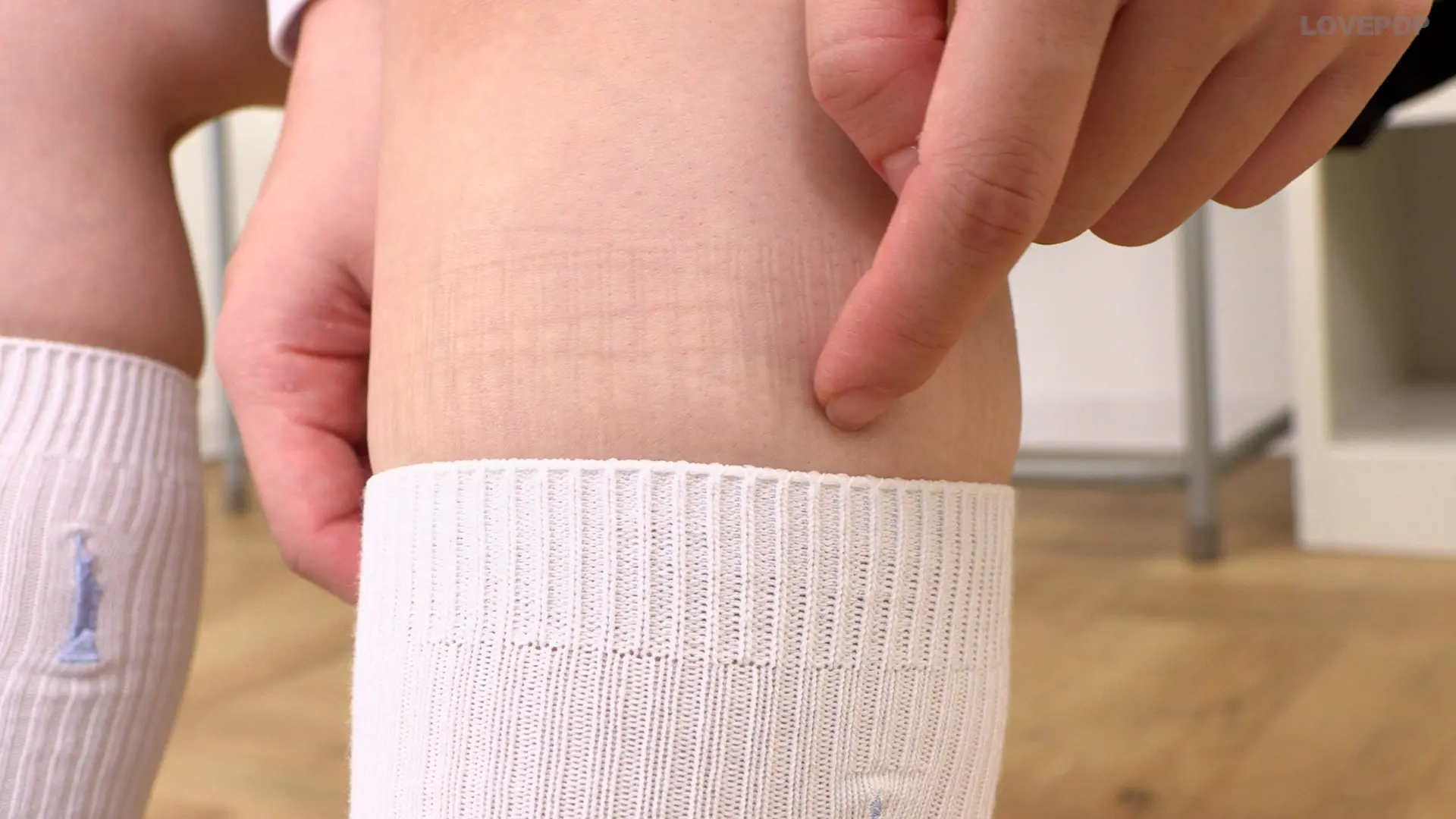 ハイソックス口ゴム部の跡をテーマにした動画です。