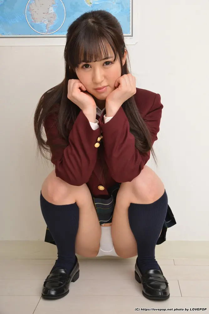えんじ色のブレザーを着たままパンチラ、パンツ下ろし、パイパンドテ見せなどいろいろなポーズを見せてくれるルリカちゃん。大事なアソコが見えそうで見えないギリギリのショットが最高です。パイパンのドテの美しさは特筆ものです。女性の体の美しさを堪能できます。身長が1センチくらいの人間になってルリカちゃんのドテに上ってみたいです。