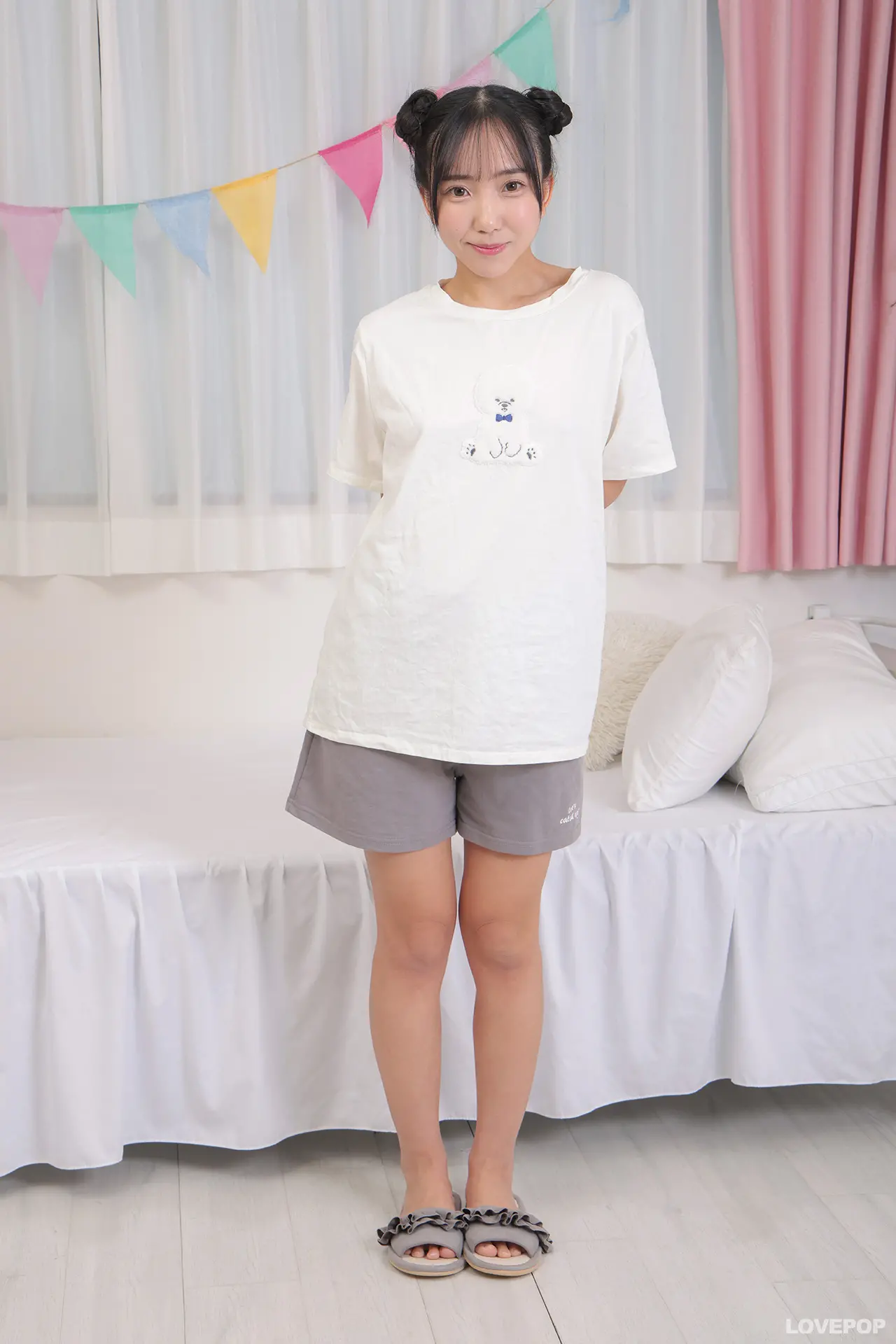 お団子ヘアが可愛らしい美咲音ちゃんの部屋着は短パンにTシャツ!