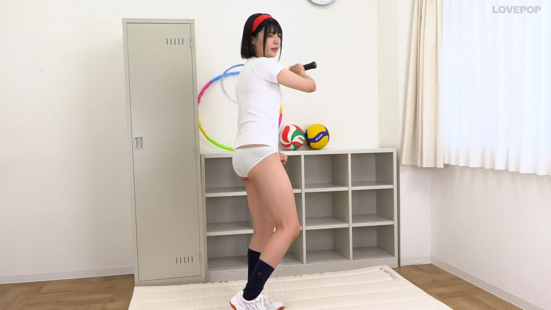 虹村ゆみ ブルマ忘れてパンツで授業 テニス経験者による華麗な素振り姿(パンツ丸見え)