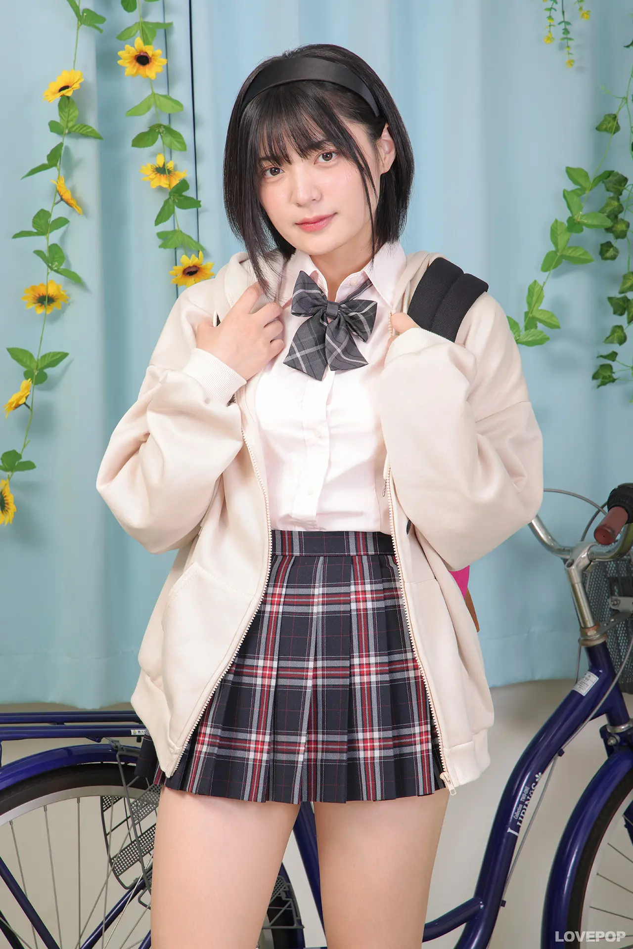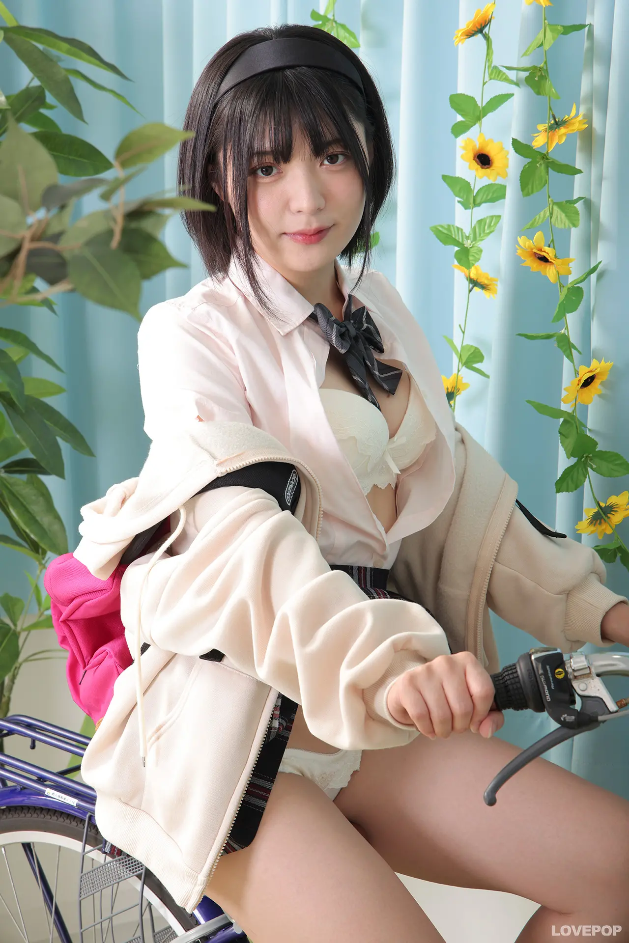 虹村ゆみちゃんが制服パーカーで自転車に乗って立ち漕ぎパンチラ!