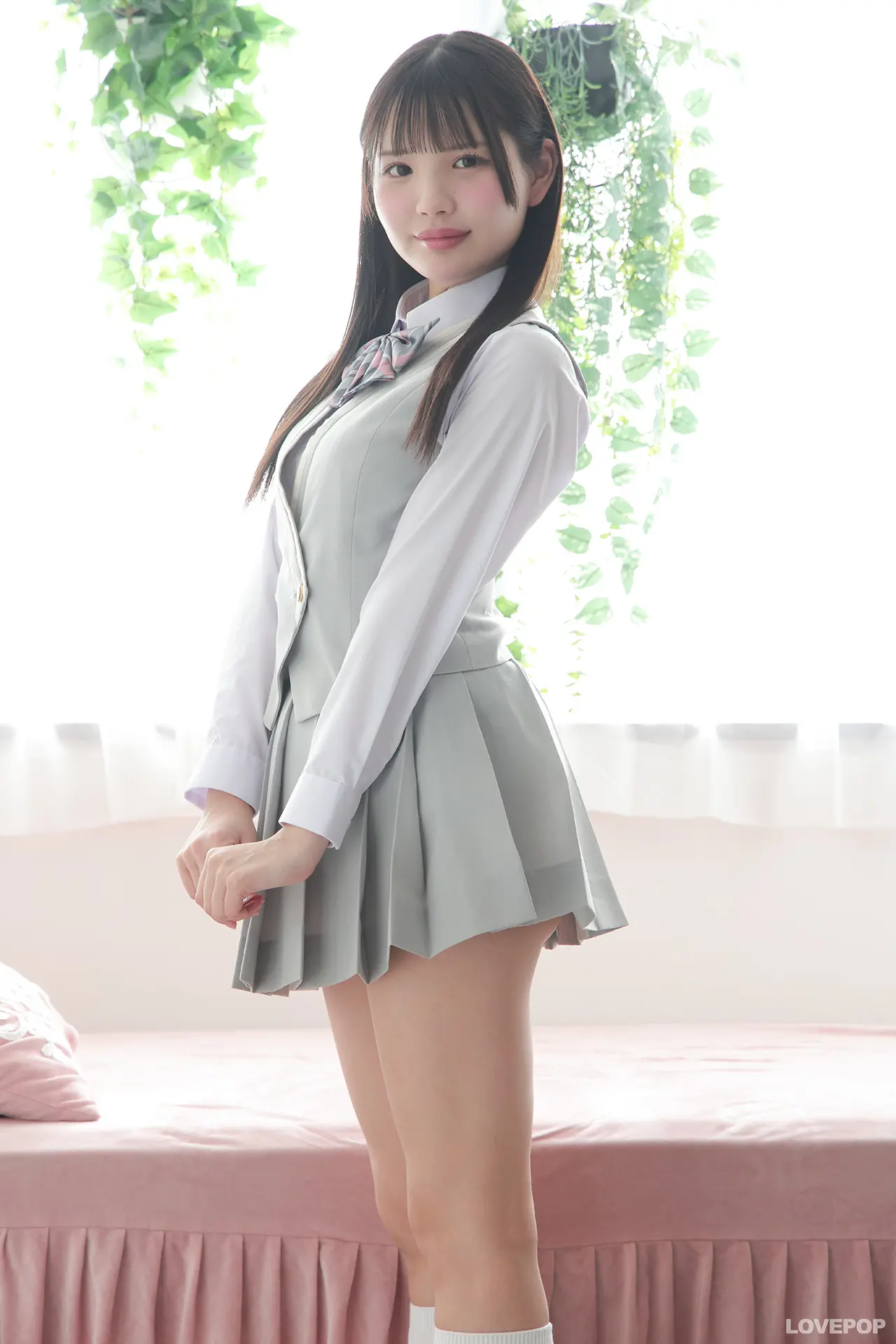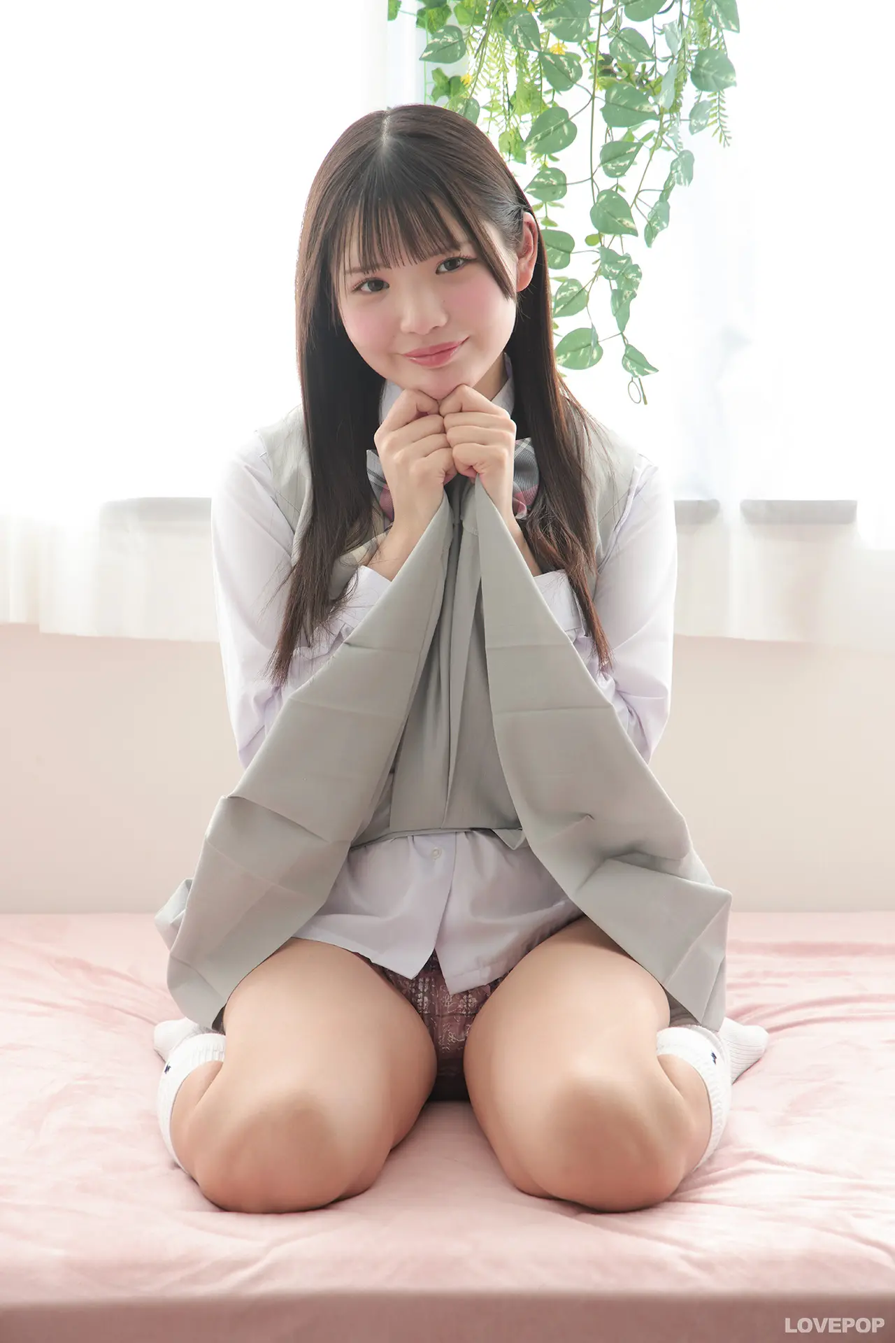 佐藤愛瑠ちゃんの制服ベストは、立っているだけでお尻がみえちゃいそうなミニスカ♪