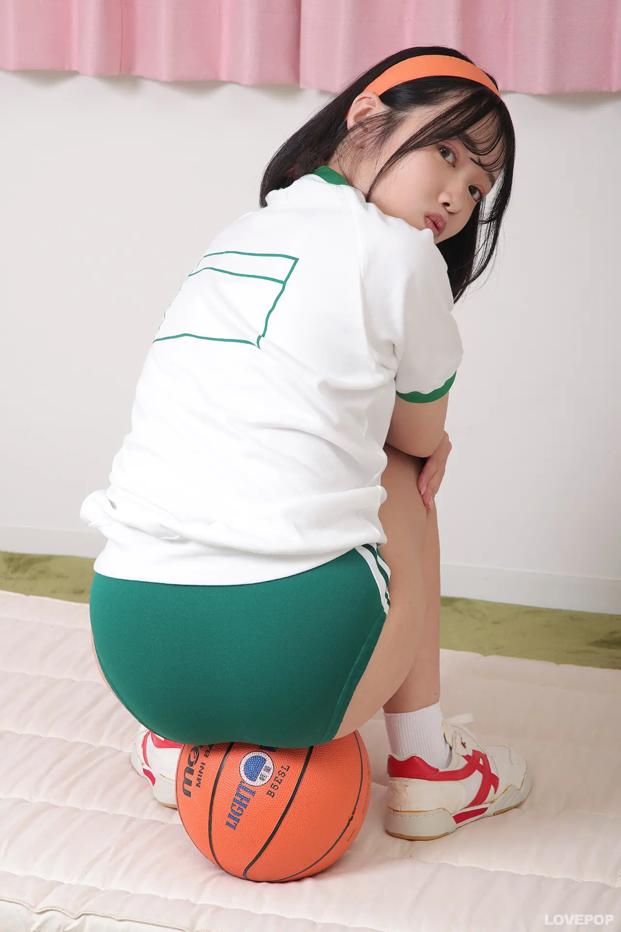 ブルマ姿で頭にはハチマキ!ボールを片手にバスケの練習?